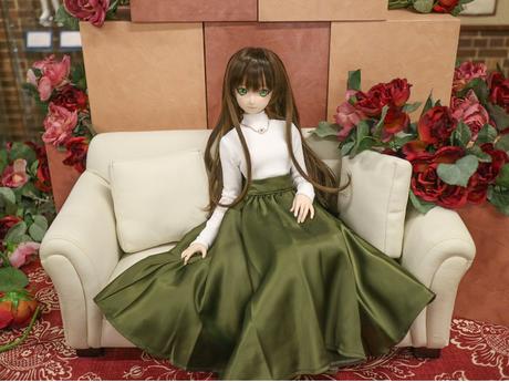 【9月新作ドレス発表会】新作ドレス「ハイネックリブニット(白)」「クラシカルフレアスカート(モスグリーン)」のご紹介♪