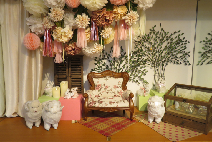 今回ご紹介するのは、天井から飾られた花々が素敵な「羊さんのいるお部屋」のスペースです♪