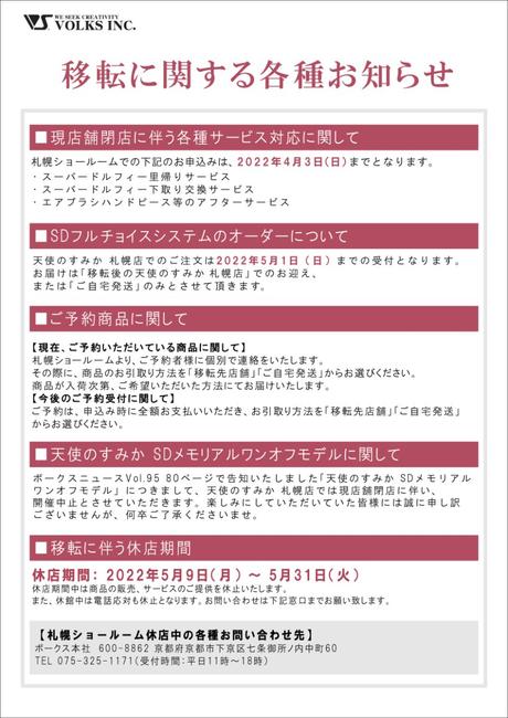 「ボークス札幌ショールーム・天使のすみか札幌」移転のお知らせ