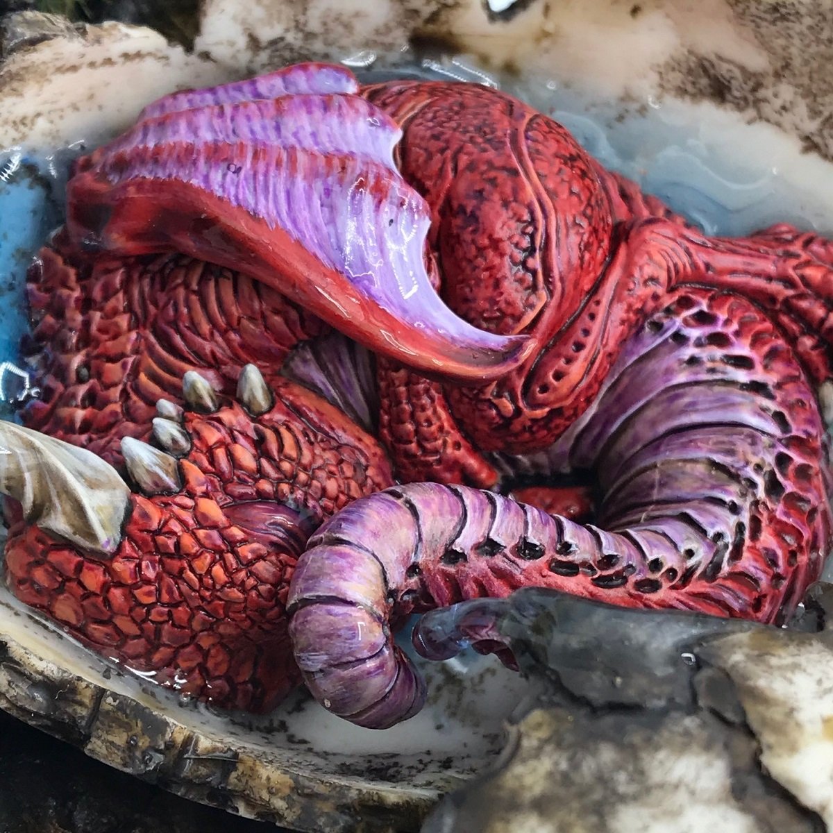 なんちゅう~こっちゃ~!となってしまいますよね、このドラゴンを完成した後はそのまま蓋を閉じてしまっておくこともできるんです、もはや小物入れの域っ、すんごいおしゃれな小物入れ!しかも今回のこの卵さんは何と成型色にメカカラーのオイルステインをバシャバシャ汚しただけと言うので・・・・すんごいかっこいいのですがっ!ぜひ真似したいんですがっ!とりあえずファレホだけ買い足しておきます!