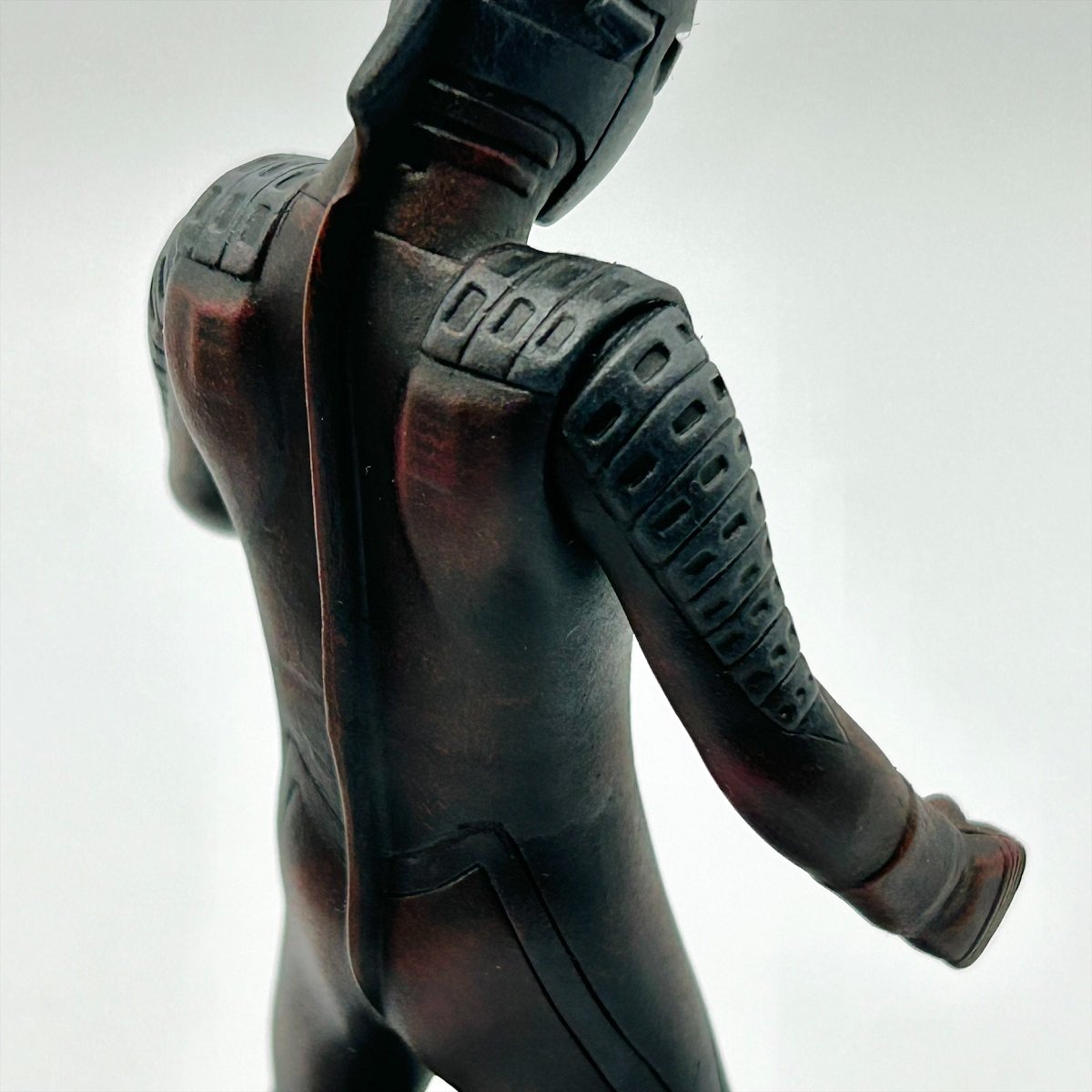 そしてご尊顔も見ていこうではありませんか!ウルトラセブンの最終回って前編・後編に分かれているんですよね!最終決戦!満身創痍になっているウルトラセブンがウルトラ警備隊の助けもあり最後に勝った!まさにその息遣いをも感じることの出来る雰囲気です!飛び立つ前の目と額のビームランプがめちゃ光っていて何とも印象的でしたよね!それを見事に再現されているではないですかっ!朝焼け逆光の中で戦いの終わった一瞬のこの間を見事に再現している作品です!めちゃ格好良い!