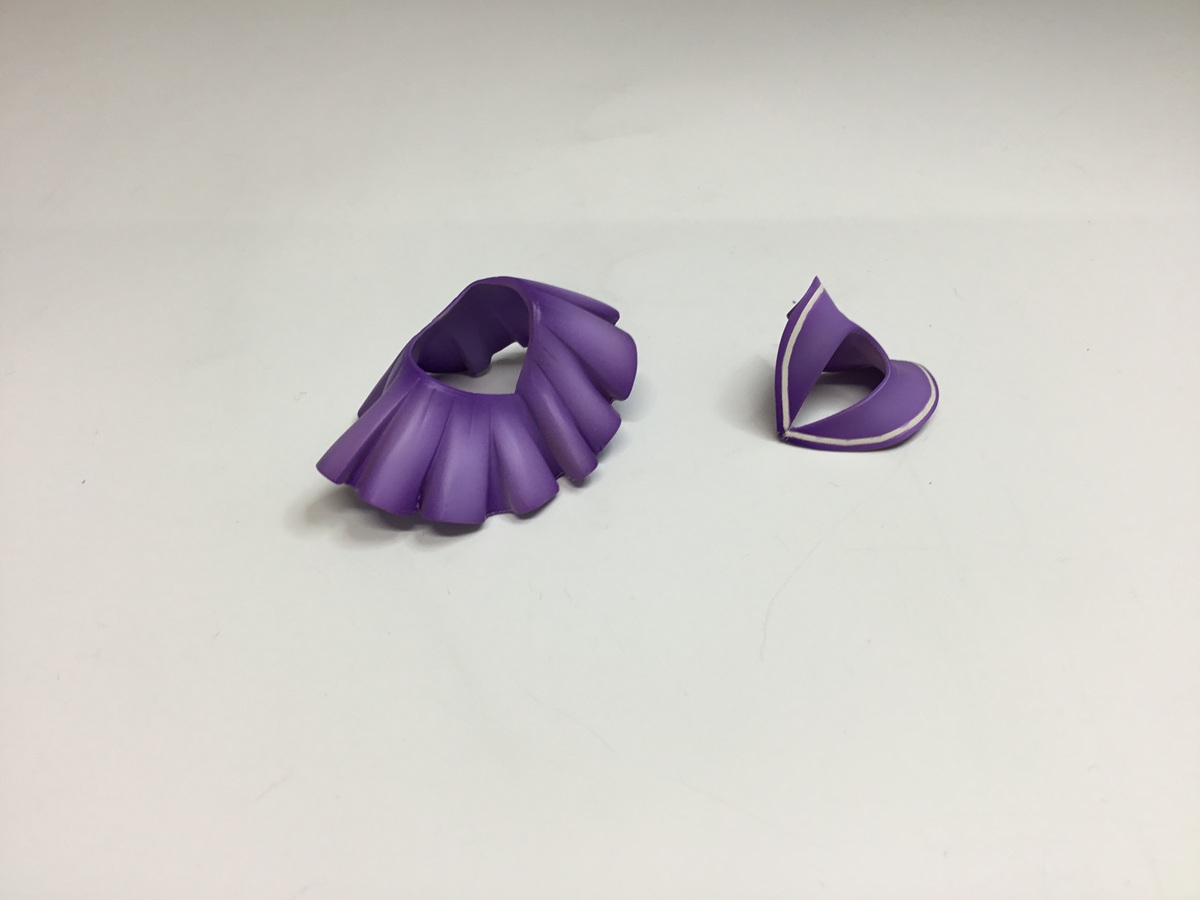 また、実際にパーツを仮にパーツに乗せた時に「物足りなさ」を感じたのでスカートの「フチ」にも輪郭線代わりにクリアバイオレットを塗り足しています。