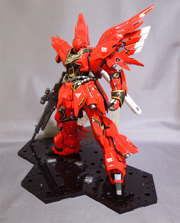 塗装については、赤は缶スプレーのMAX塗りで、黒とスラスターの金色、装甲部分のスミ入れにファレホを使用しています。