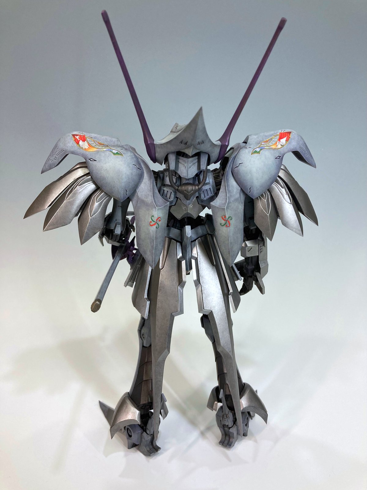 『白銀の騎士』のイメージで筆塗りしました。銀、紫、ポイントカラーでファレホを使用しています。