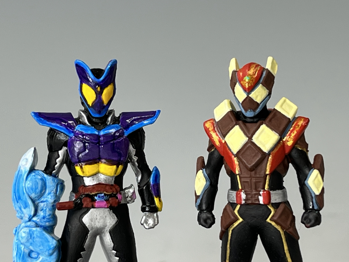2作目はチョコスナックのオマケフィギュアをリペイント!スタッフセレクト賞受賞です。元々は単色のフィギュアですがディテールが細かいので筆塗りに最適です。全高60mmサイズながらガヴのアーマーのツヤ具合、ヴァレンはまさにチョコレート!という色合いの再現が素晴らしいです!