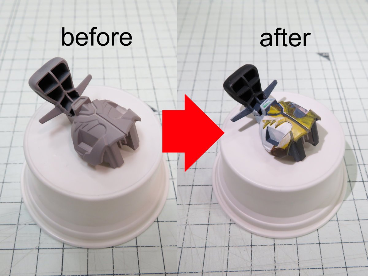 こちらの作品テーマは「イラスト風」に塗装を行っており、前回は「頭部前側」と「眼のパーツ」を塗装するところまで進みました!
