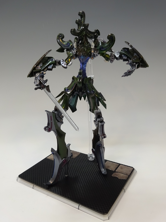 パールカラーと偏光カラーを組み合わせた塗装が装甲のデザインと組み合わさり見る角度によって様々な輝きを見せ目を惹きつけます。