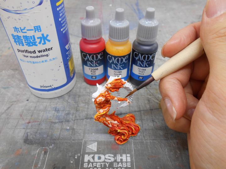 染料であるゲームインクの特性を生かすことで、筆塗りでも色鮮やかに塗装出来ちゃいます!