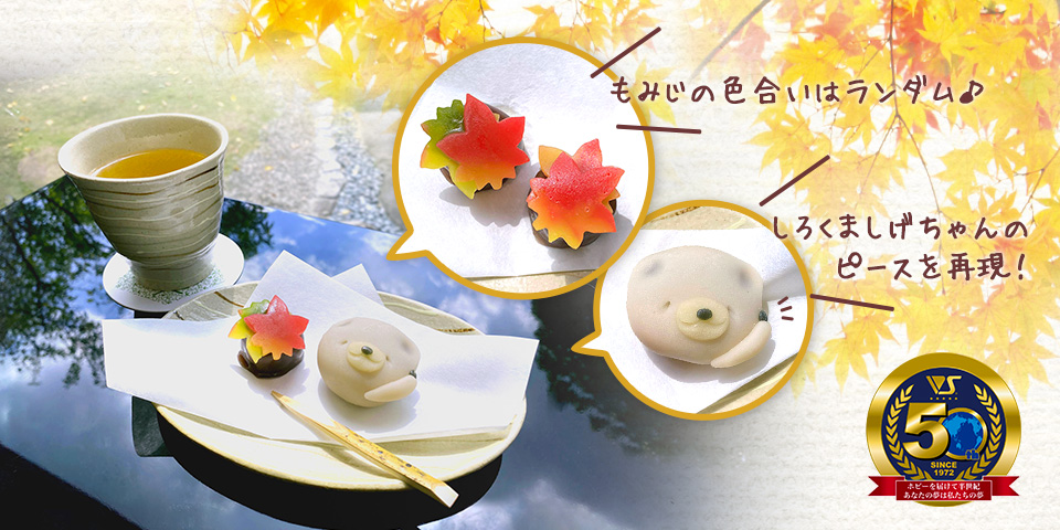創業50周年を記念して、しろくましげちゃん☆が愛らしい上生菓子になりました。