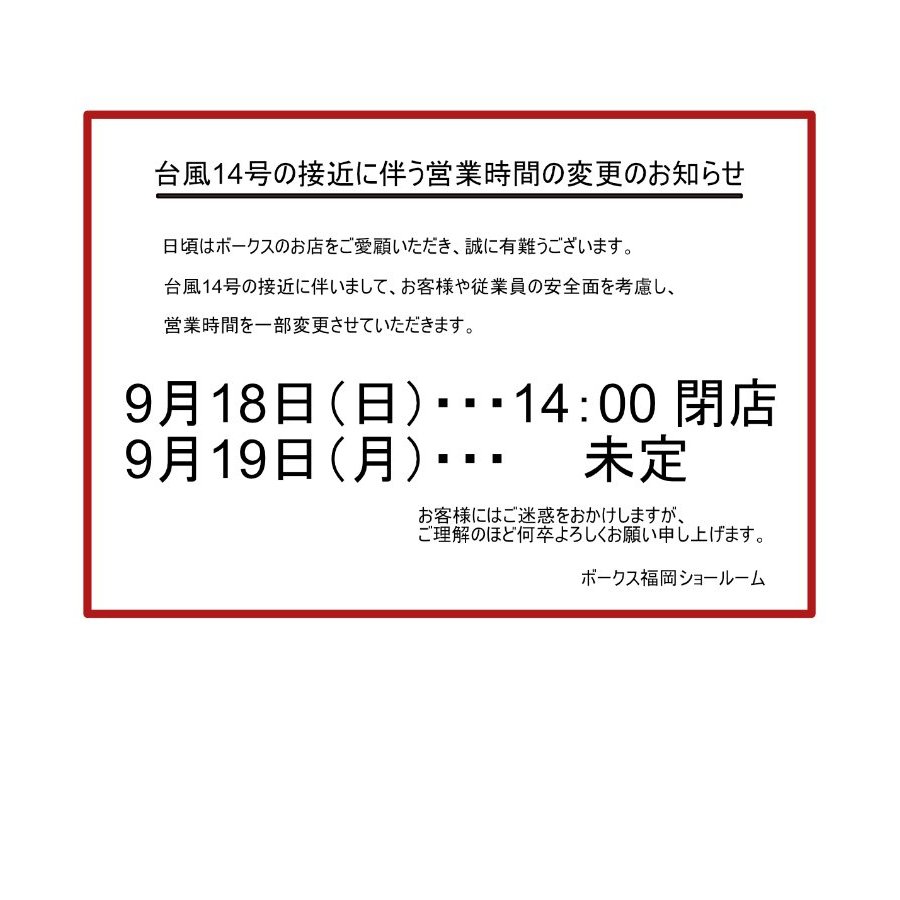 【福岡店】営業時間変更と臨時休業のお知らせです。