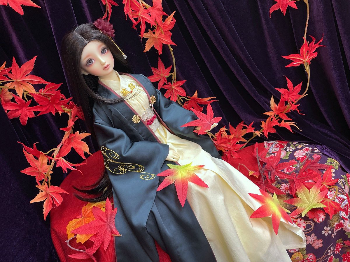 もみじのスペースは赤が印象的で、10月新作ドレスの京の衣シリーズにもぴったりです。