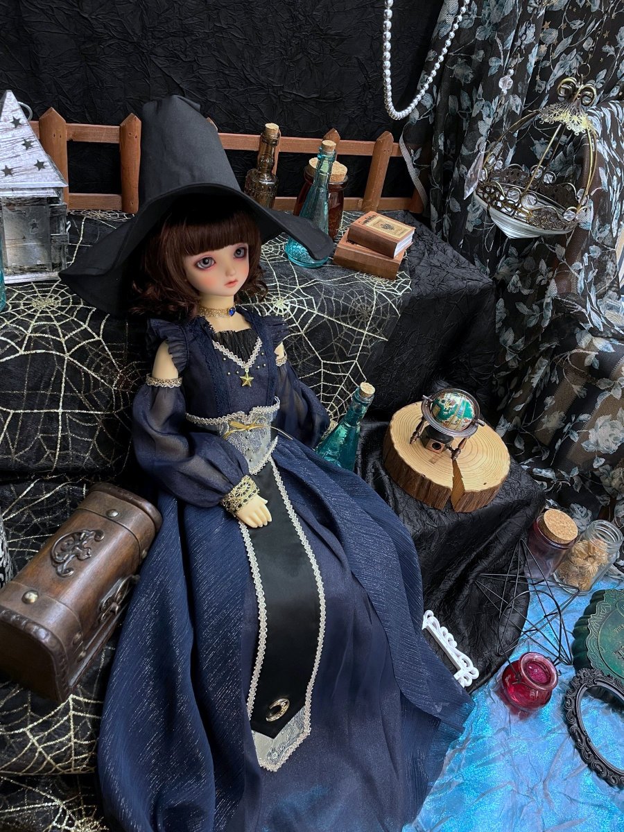 深いブルーに煌めくラメが美しい星詠みの乙女にウィザードハットを被せて撮影すると、気分は魔法使い♪