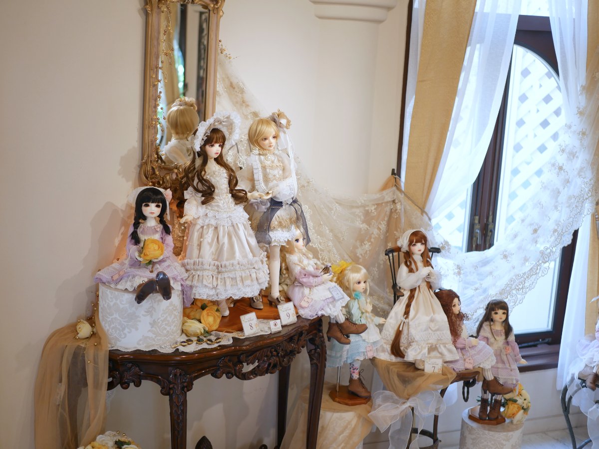 今回は宝石のように煌めくドレスに身を包んだSDワンオフモデル達が天使の窓の1Fを彩っております。
