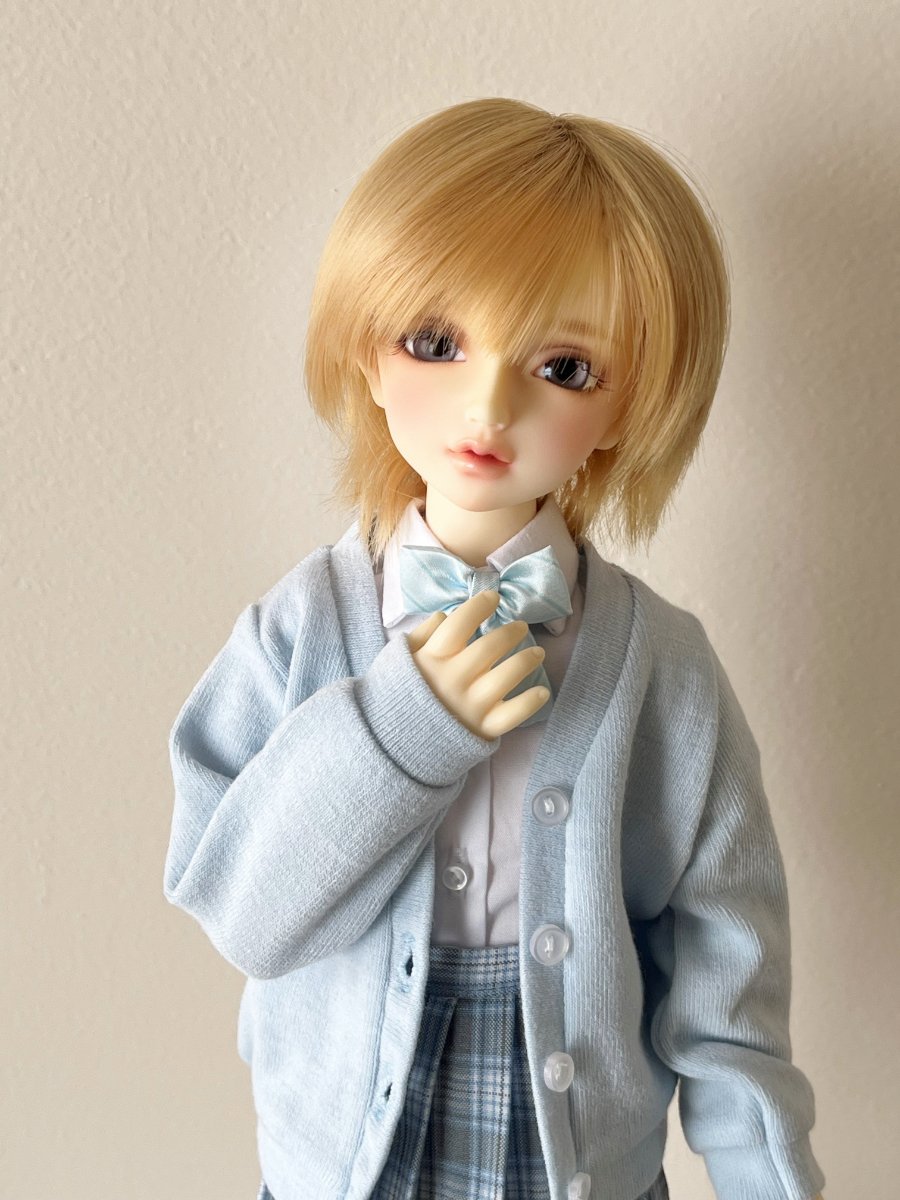 付属のカーディガンはダボっとしたサイズなので羽織らせるのはもちろん、腰に巻いても◎