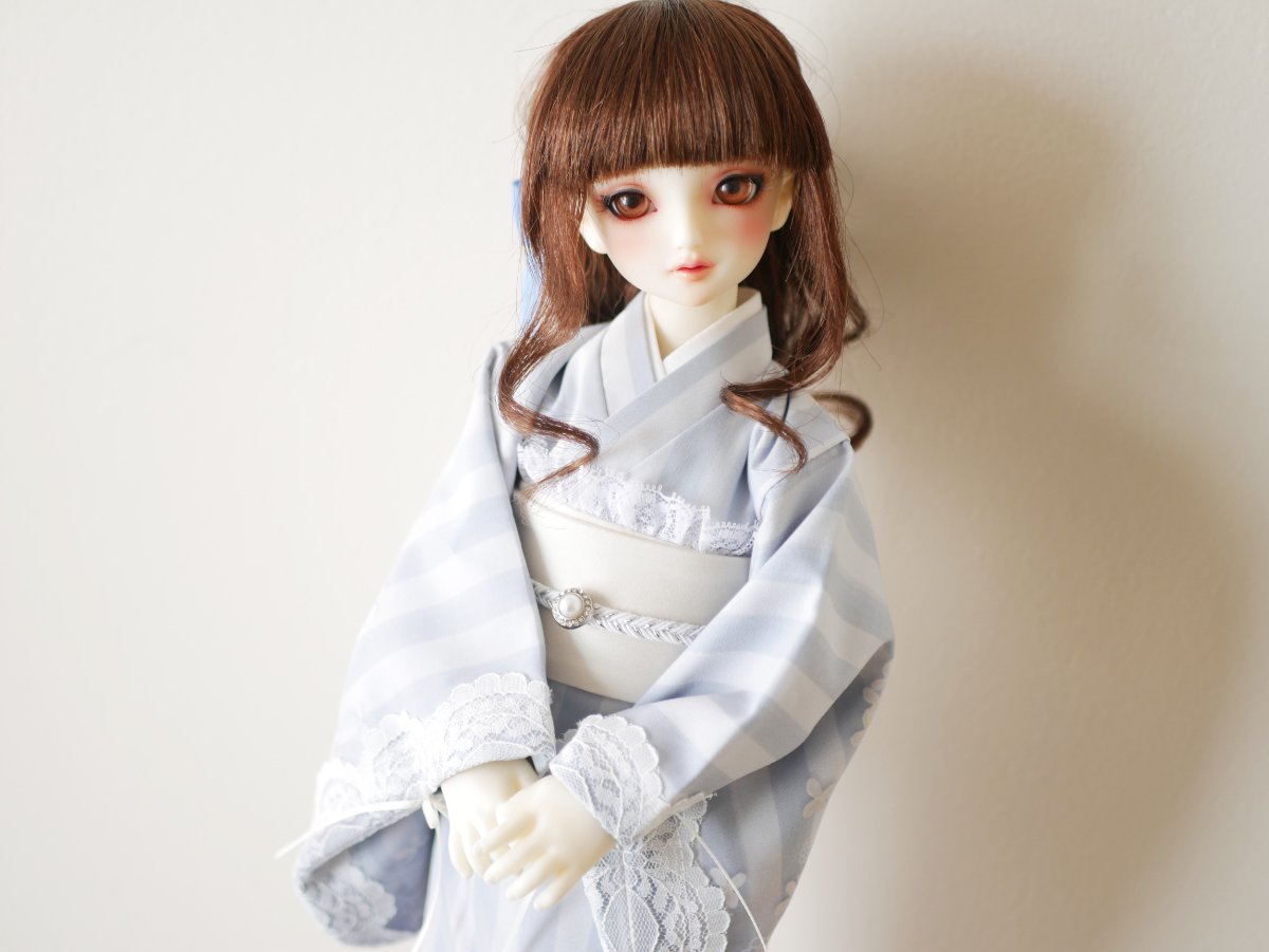 つけ襟とスカートを着せずにレトロなお着物スタイルもオススメ。
