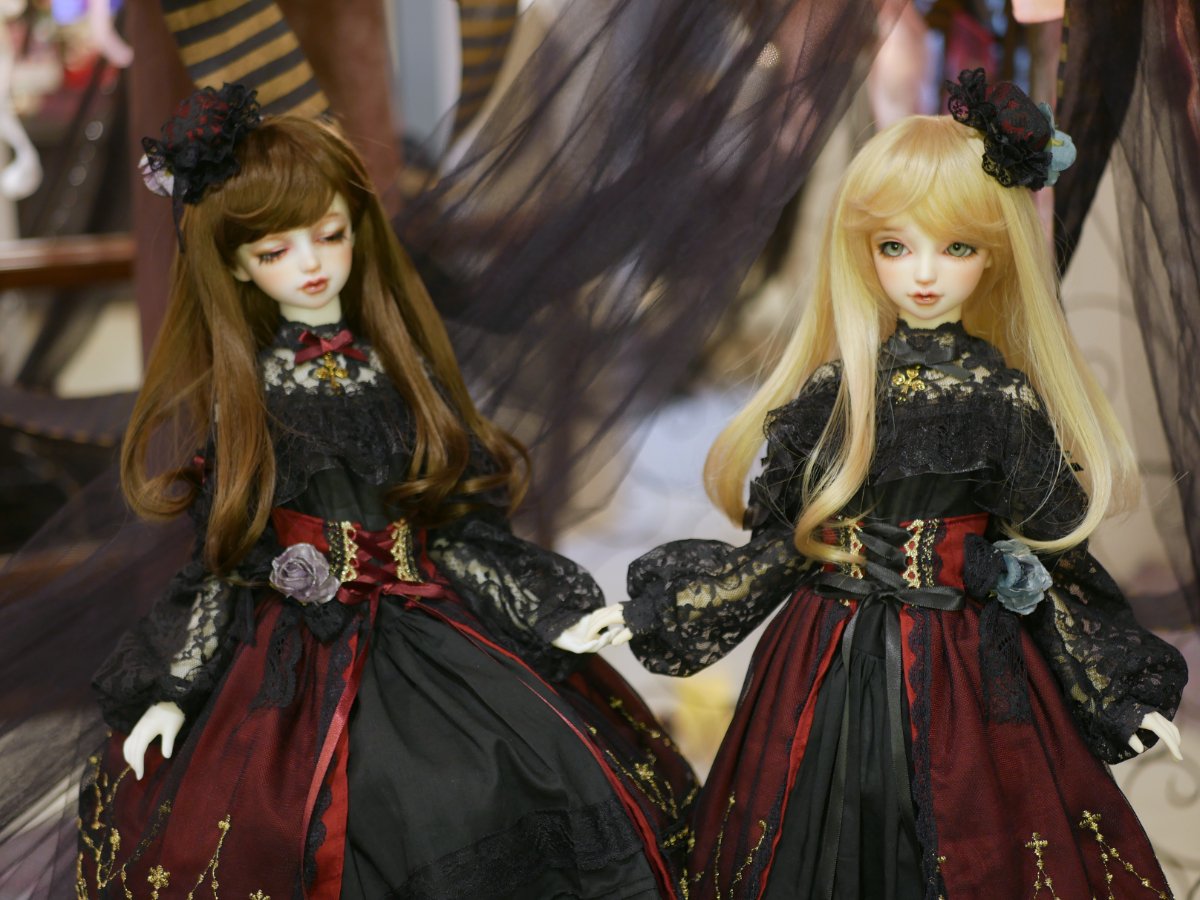 双子のようなこの二人。それぞれの目元には、遂になるようなビジューが取り付けられておりとっても素敵な仕上がり。