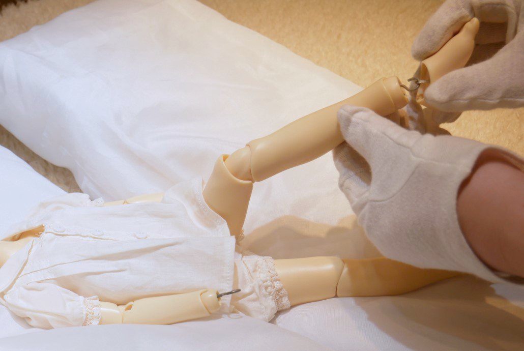 今回はこのテンションゴムの取り換え作業を実際にドールアドバイザーが実演を行います。