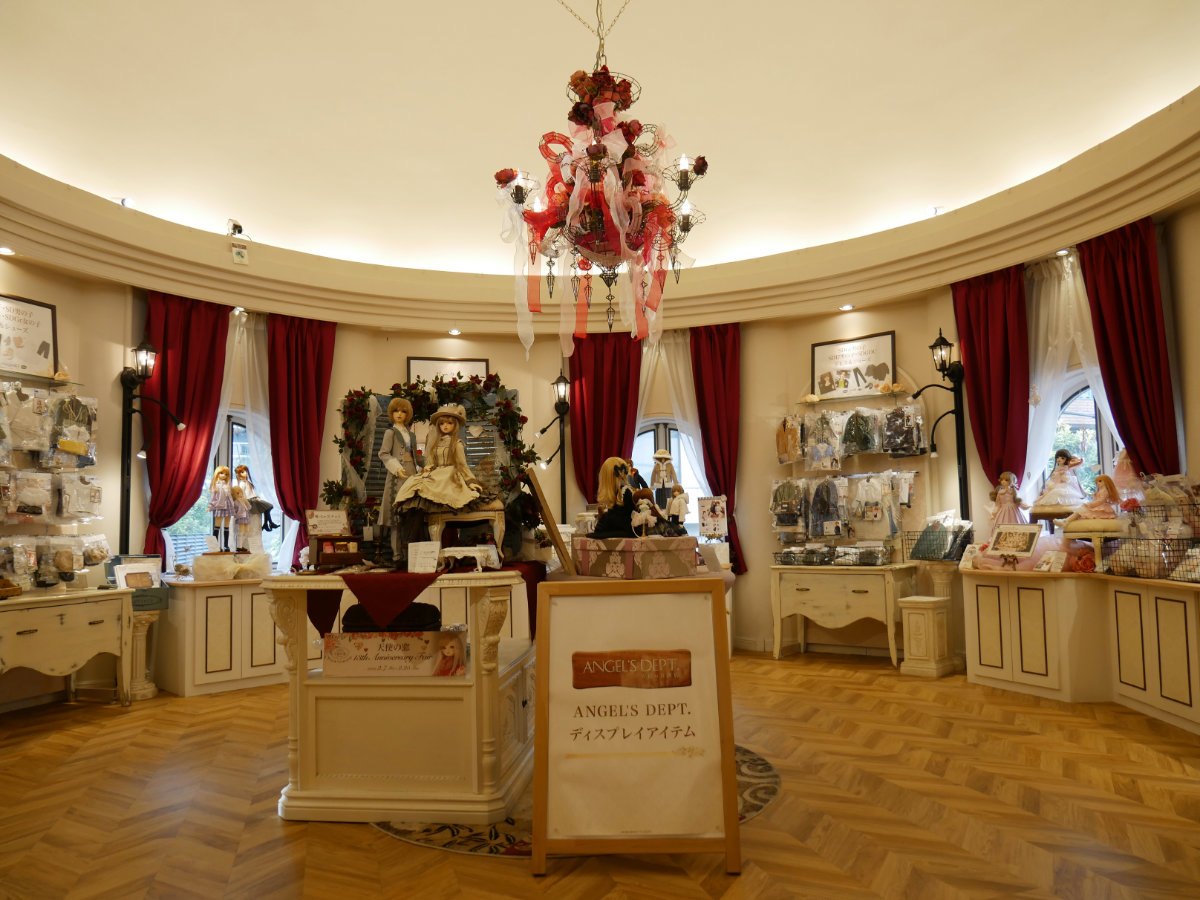 2Fショップのシャンデリアも赤いバラで彩られアニバーサリーを盛り上げます。