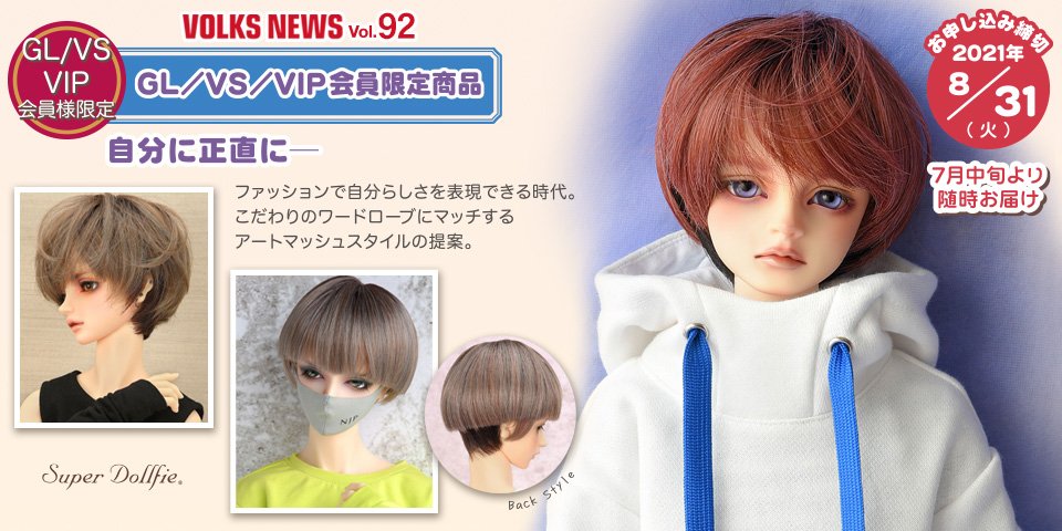 ボークスニュース Vol.92 GL/VS/VIP会員限定商品 ドルフィー用ウィッグ「アートマッシュ(ルーズ/ストレート)」。大変ご好評をいただき、多くのオーナー様にお申込みいただいております。