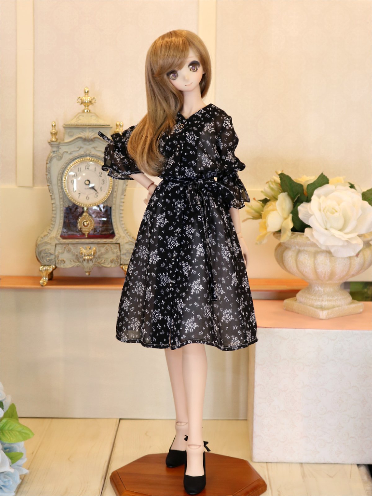 シフォンワンピースの袖にはゴムが入っているので、ふんわりと可愛らしいシルエットに。