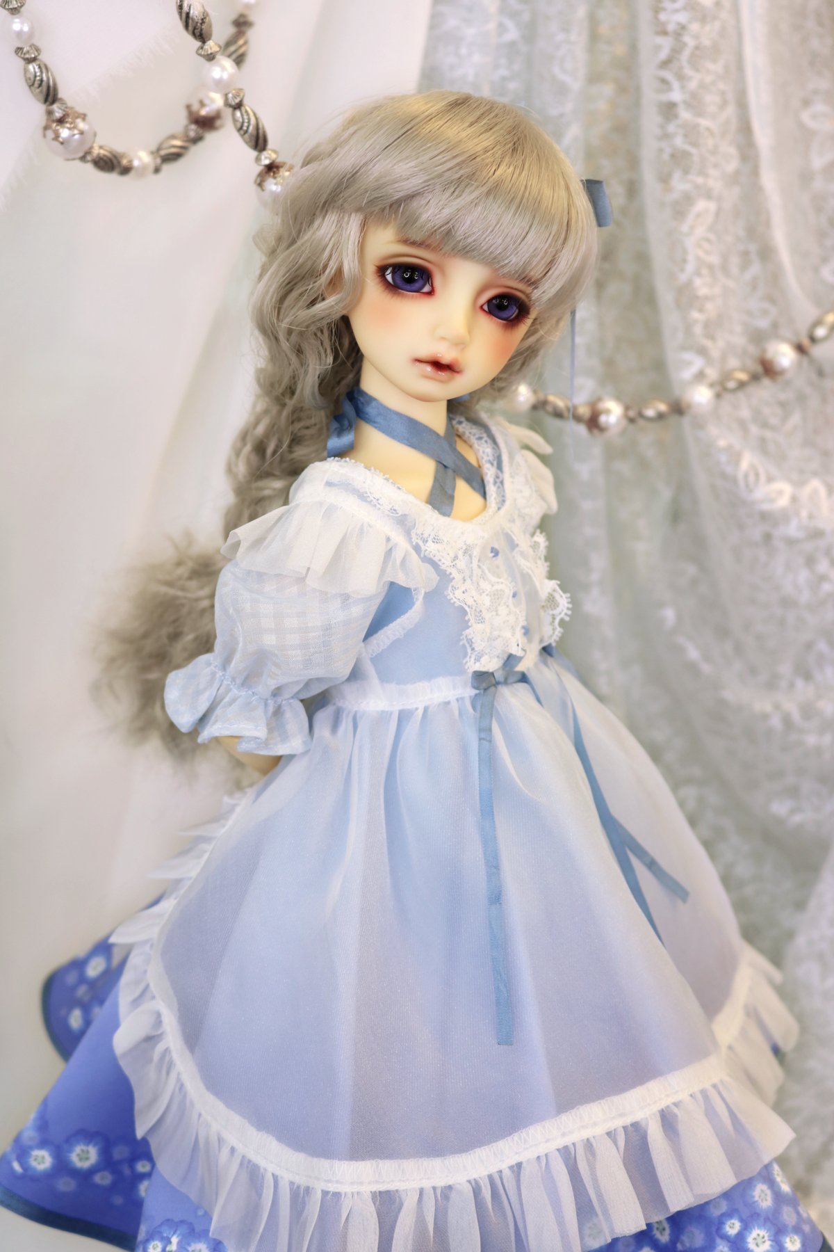 オーガンジーエプロンを着用すると愛らしさが際立ち、ワンピースのみは色彩の変化を楽しみながら、ドレスが織りなす世界に引き出されるドルフィーの表情をお楽しみいただけます。