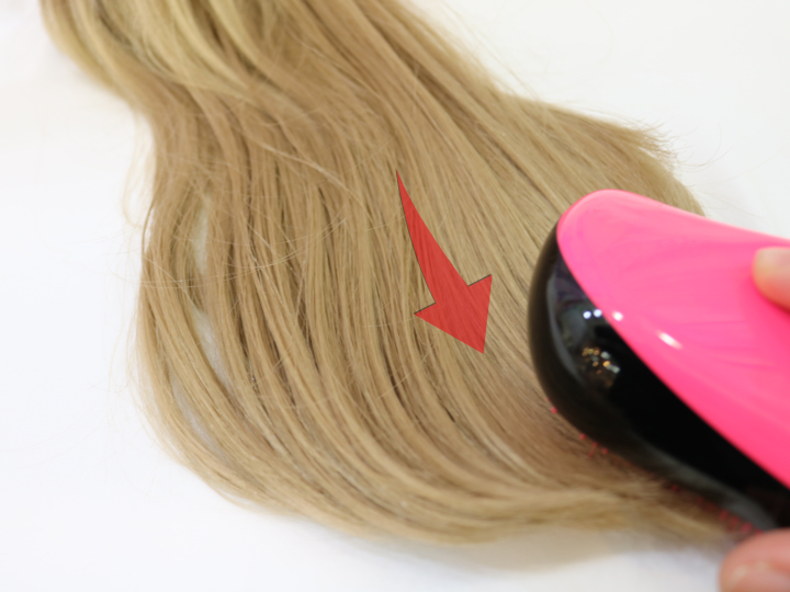 髪が引っかかったときに力をかけて無理に通すようなブラッシングでは髪表面のキューティクルを傷めてしまいます。髪同士が絡まらないよう毛先から少しづつほぐすのがオススメです。