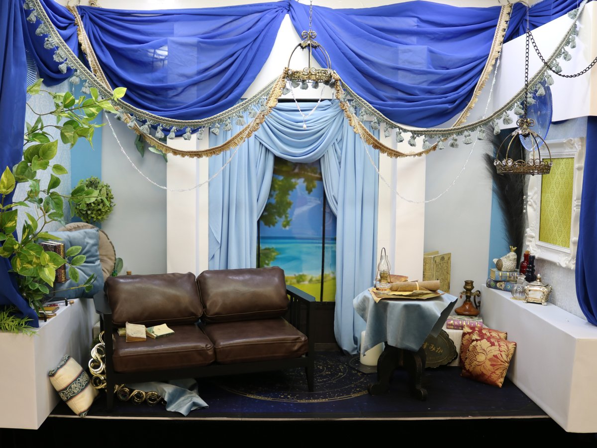 今回の中撮影スペースは、爽やかなブルーの壁紙が夏らしい室内スペースです。
