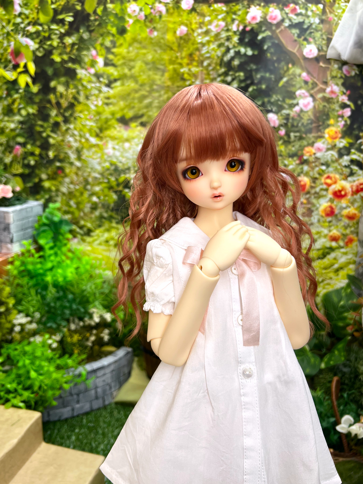 どんなウィッグとも相性がいいピンクオレンジとブラウン系のガーリーなマイクと亜麻色の優しい瞳は、あなたのコーディネートでどんどんお好みの子に成長してくれるSDです♪