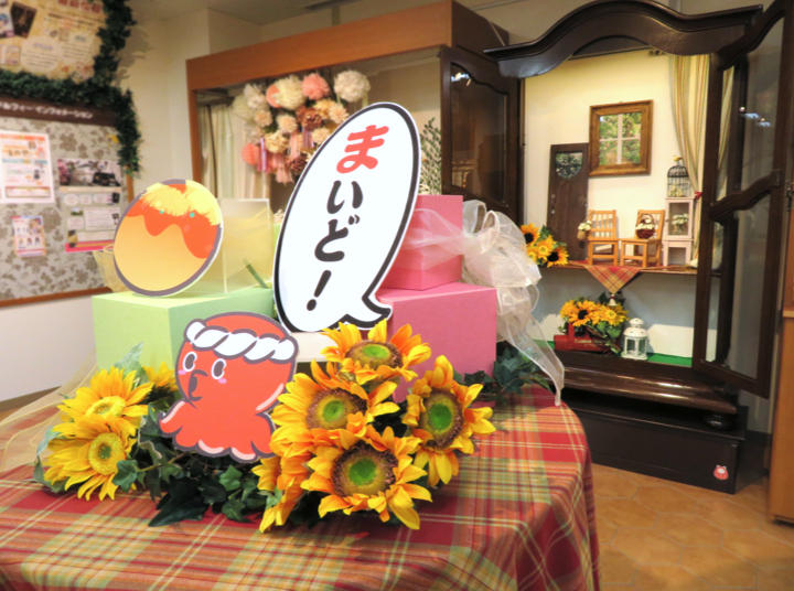 まずは、夏らしいひまわりに、タコにたこ焼きと賑やかな円卓のスペースです♪