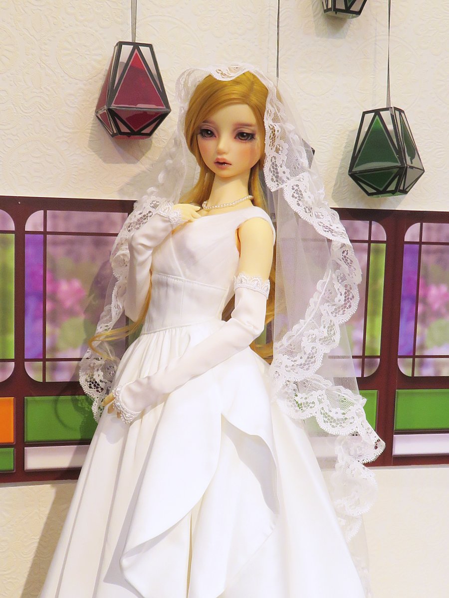 ミドル丈のマリアベールがお顔周りをさらに華やかにしてくれます。