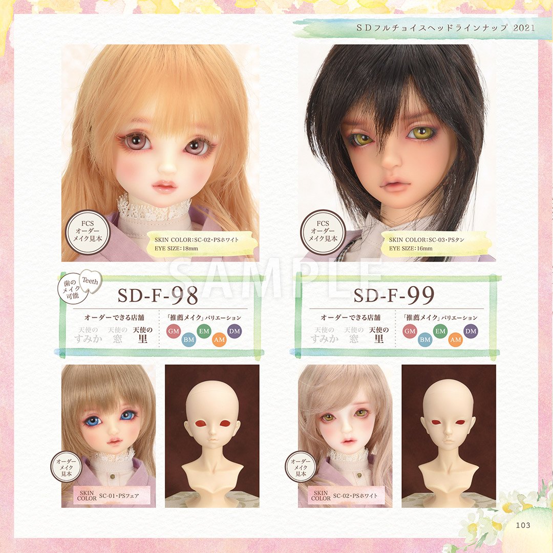 「フルチョイス基本情報」はもちろん、どのヘッドでオーダーしようか迷った際に役立つ「フルチョイスパーツラインナップ 2021」、メイクを考える際の参考になる「SDフルチョイスシステム推薦&オーダーメイクレシピ 2021」等が掲載されております。