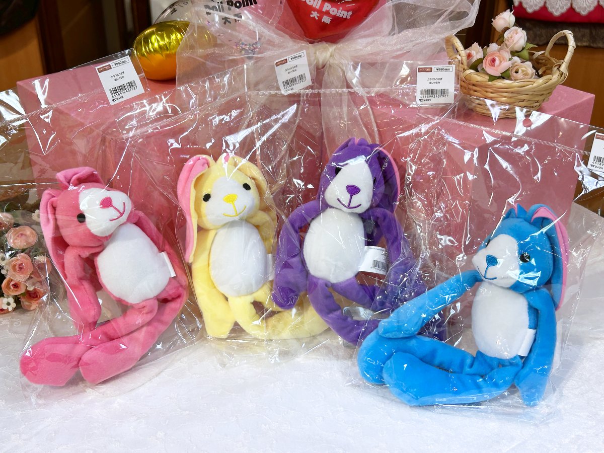 本日は、店頭にて好評販売中の「カラフルうさぎぬいぐるみ」をご紹介いたします!