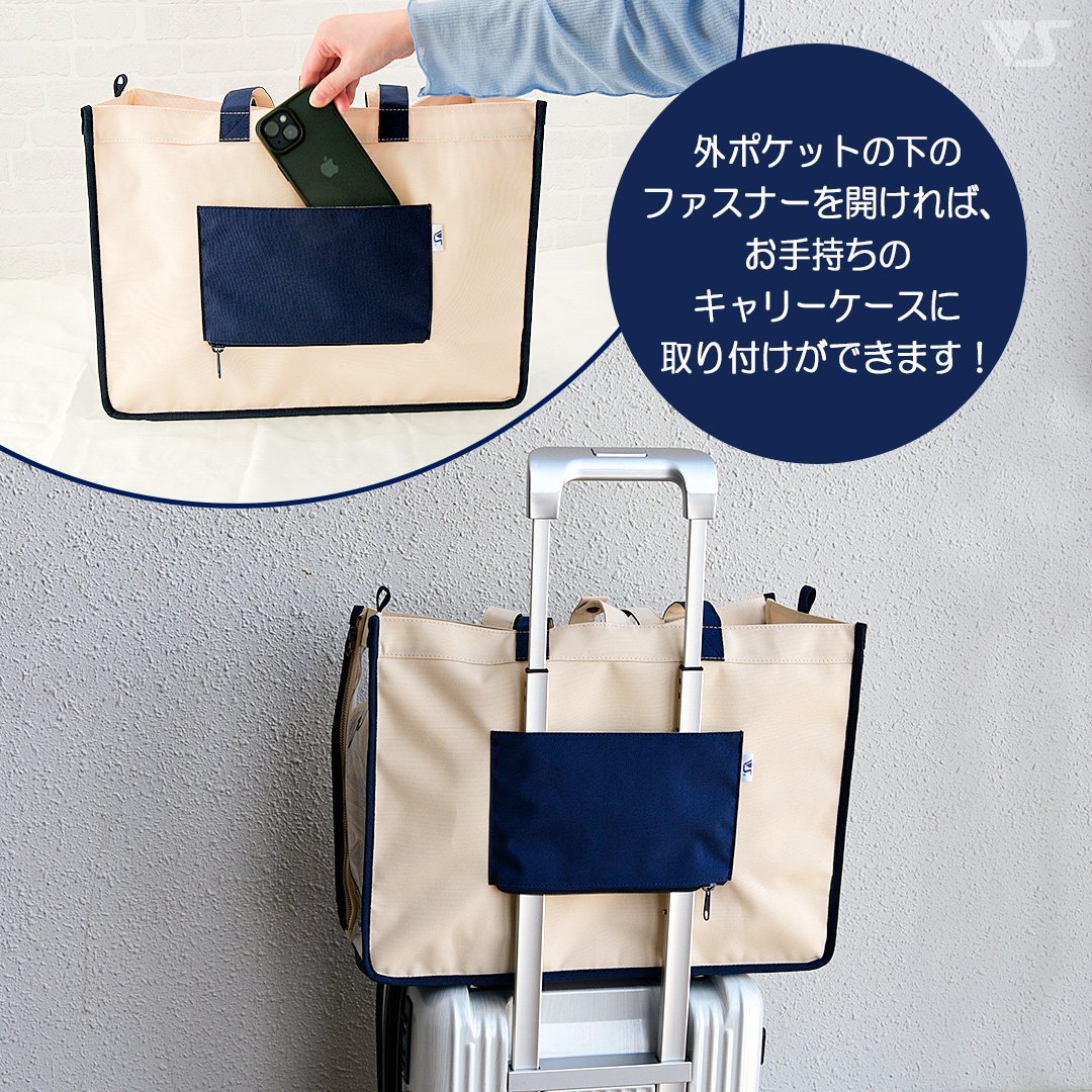 外ポケットの下のファスナーを開ければ、キャリーケースの持ち手部分に取り付けも可能です☆