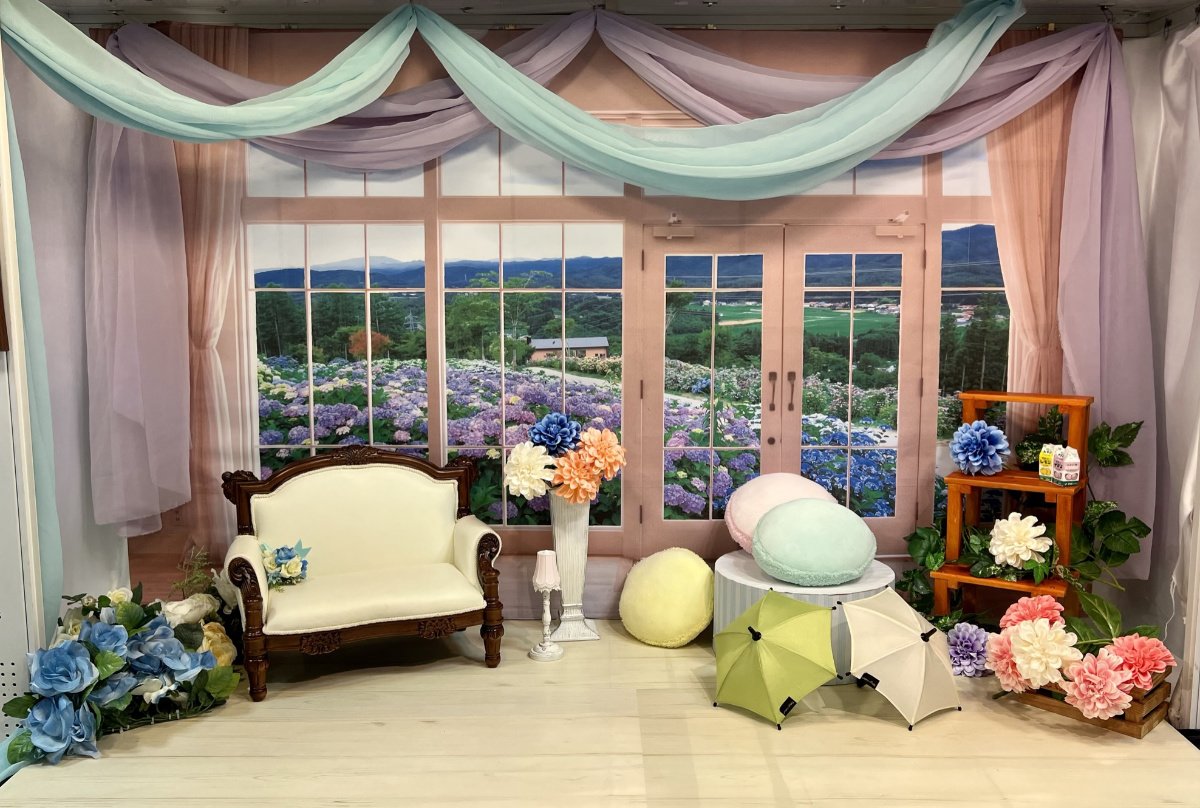 6月のメイン撮影スペースのテーマは「アジサイ畑の見えるお部屋」です!