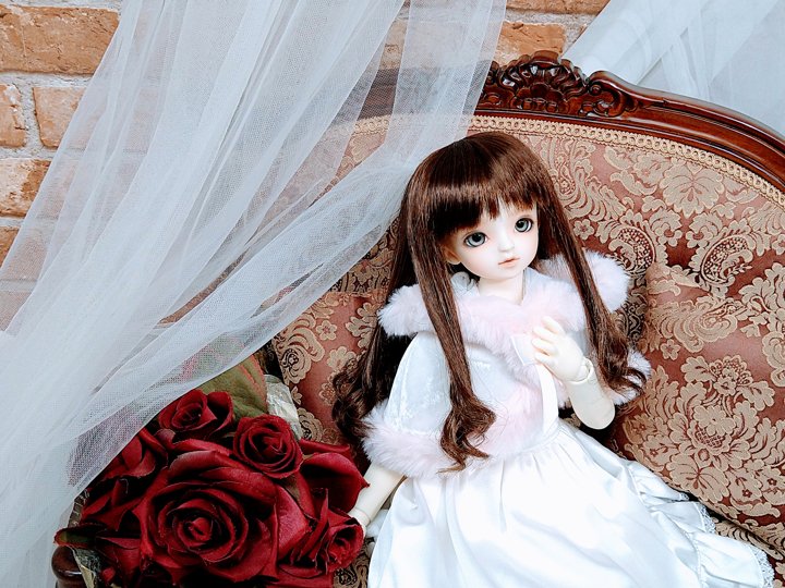 白いドレスに身を包んでフワフワのケープを着たらお出かけの準備はOK!