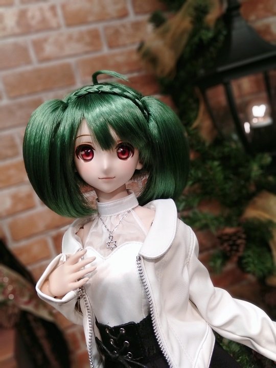丸襟が可愛いホワイトのレザージャケットは、ガーリーなドレスにも合わせやすいですよ♪
