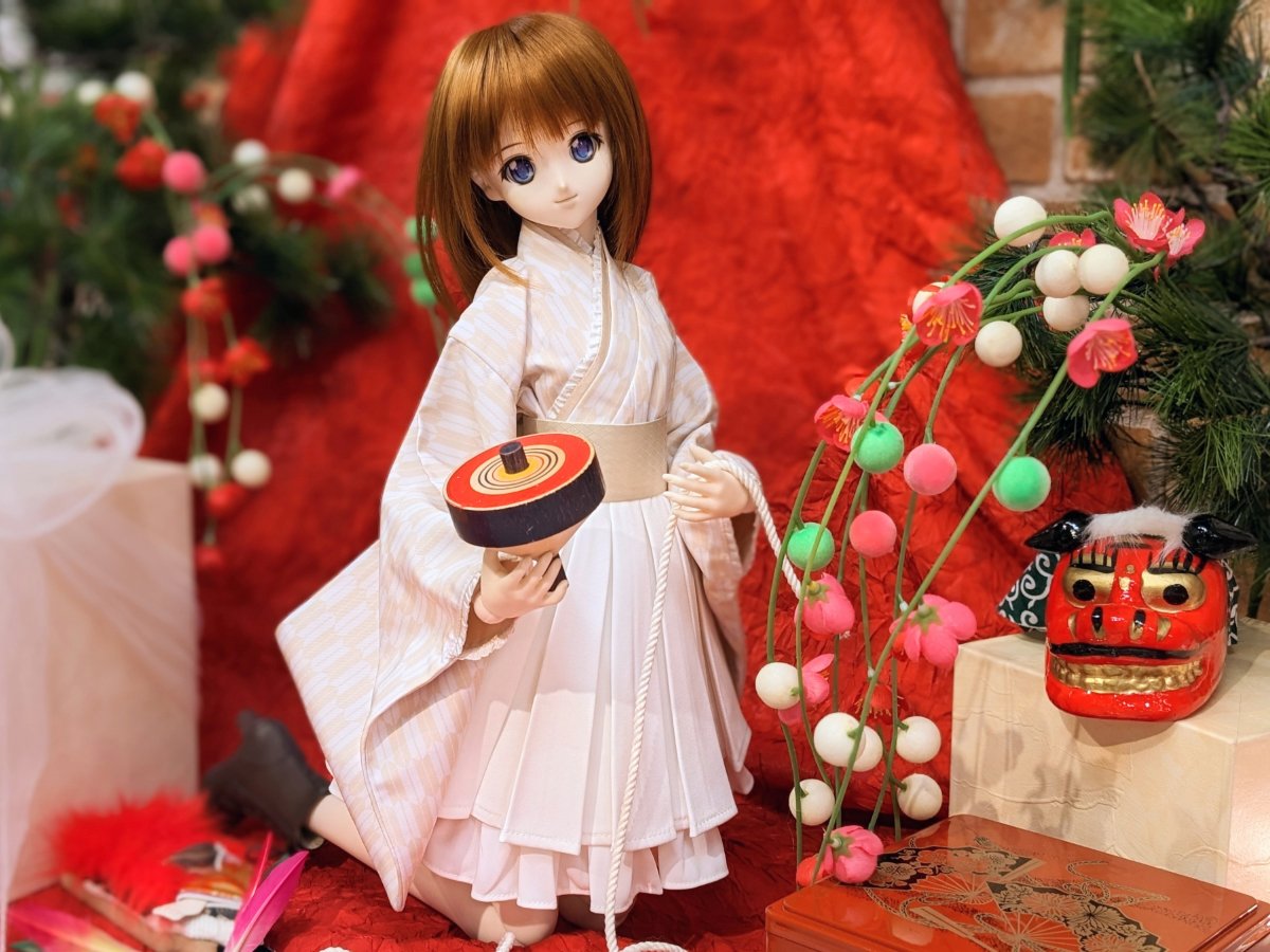 羽子板やコマなど、ドルフィ―が手に持てる範囲の小物は自由に動かしてお楽しみくださいね。