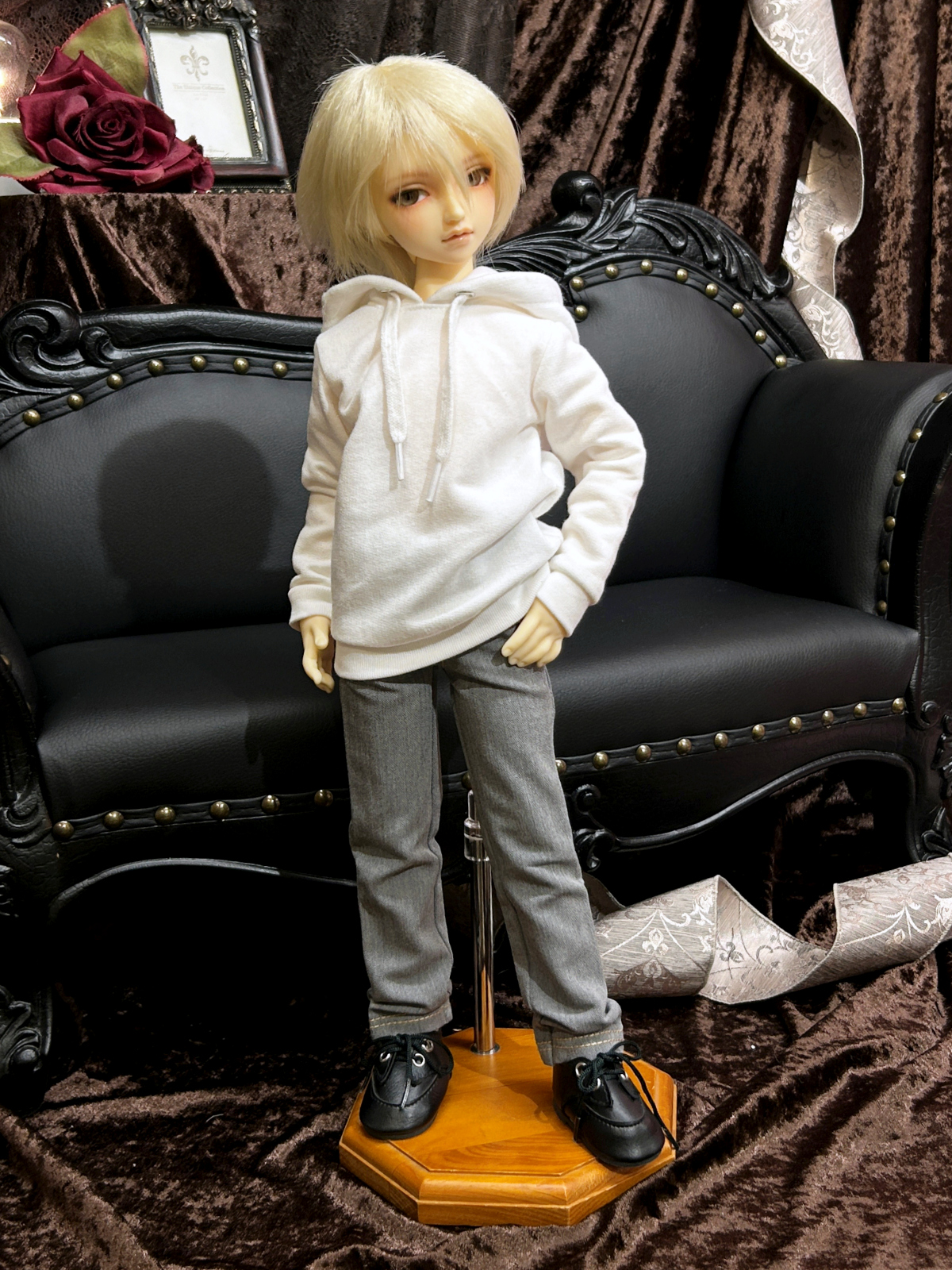 V-jeansブランドタグとデザインステッチとリアルなジーンズですが、やわらかい生地でできているので座りポーズもラクラクです。