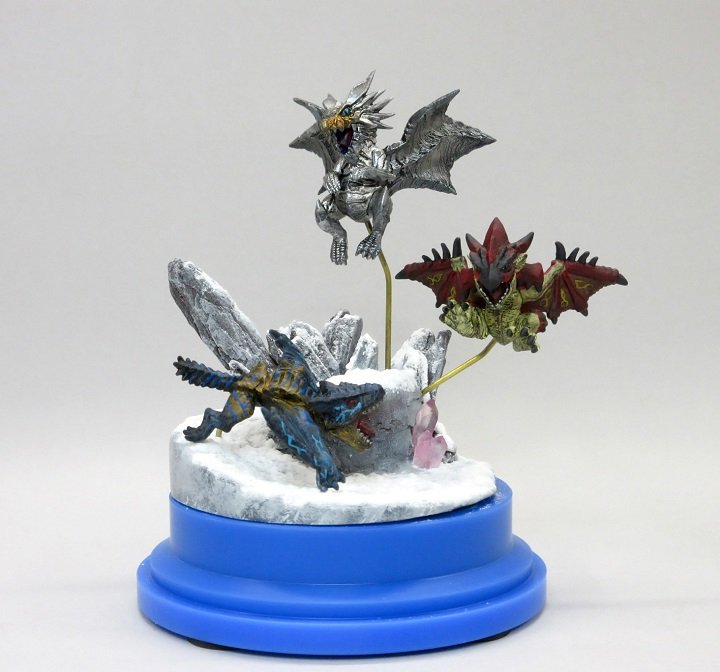 コメント:プライズフィギュアをイラストを参考にファレホで塗りました。光線はエポパテ、地面はファンドで造形。