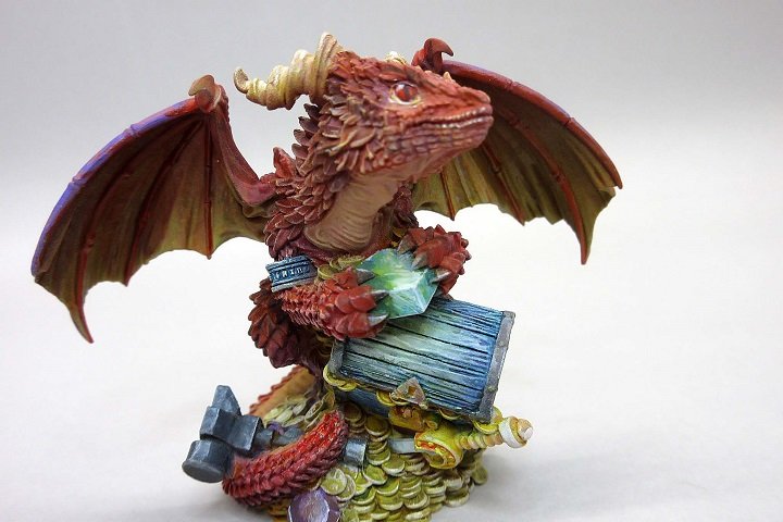 そして手に持った宝石や足元の財宝もひとつひとつ丁寧に塗り分けられており、コメントでも仰られているようにミニチュア筆塗りを楽しんでいるのがよく伝わってきます!