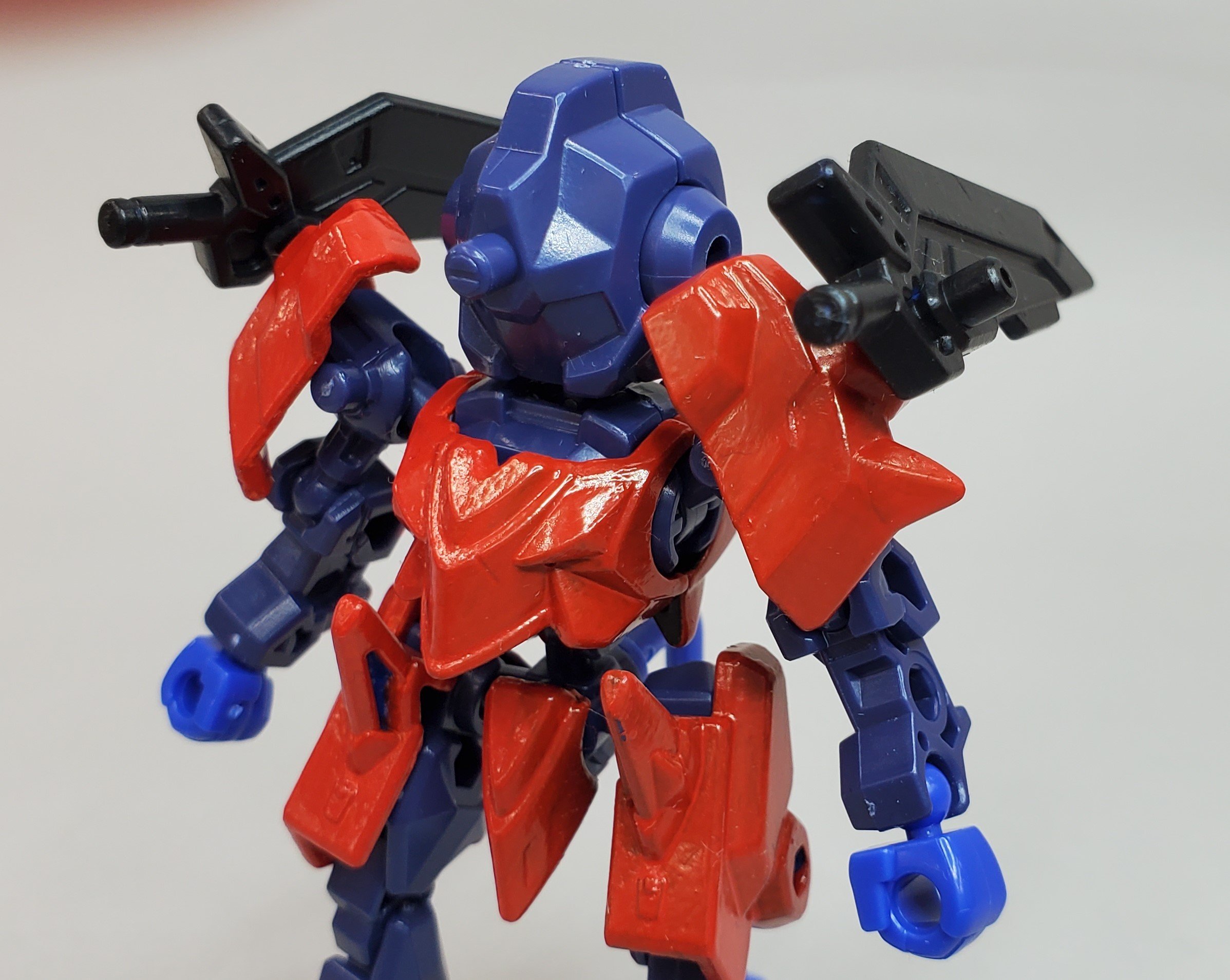写真ではちょっとわかりにくいですが、黒の左半身が落ち着いた赤になっているのに対して白の右半身は明るく鮮やかさがまましていますね。実験作と言いながらもカスタマイズ&モードチェンジで色々なパーツやカラーが入れ替えられるのが魅力のアニマギアでは一色塗るだけで左右で色を変えるという仕上げはまさにピッタリ!ナイスチョイス!うい様、ファレホの特性を活かした示唆に富んだ作品でのご参加ありがとうございます。