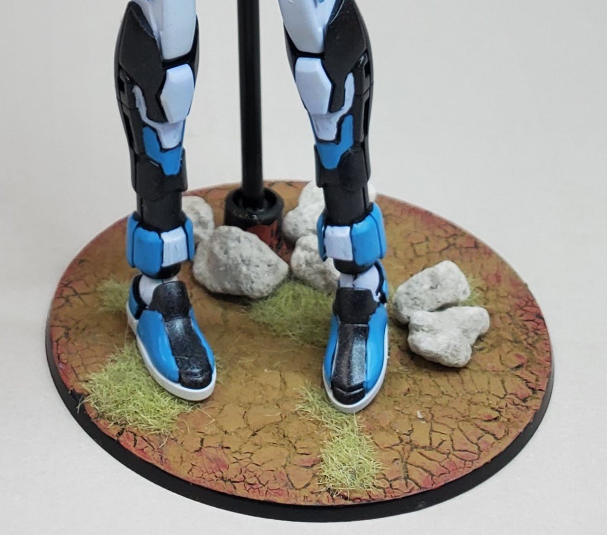 台座も色々と工夫されています。特にクラックは大小サイズを混ぜているだけでなく、足元のヒビを埋めて地面が踏み固められている様子を再現しているのがわかります。乾いた地面の雰囲気が良く出ていますね!