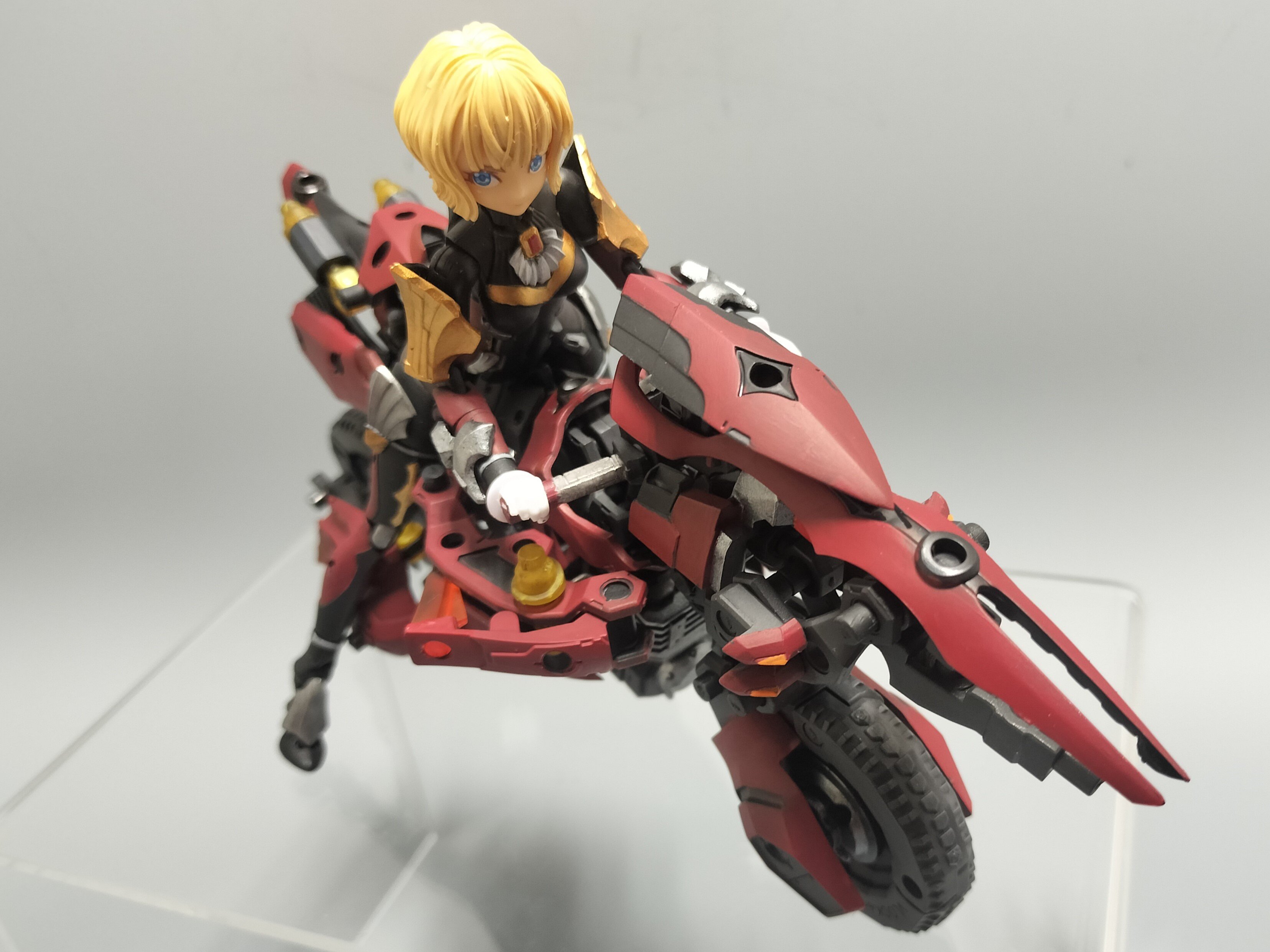 アキレアをベースとして黒のバイクスーツに金髪の映えるカッコイイ女の子がエントリー!跨るバイクもパーツの選定も秀逸で特にエンジン部分の使い方はオシャレですね!