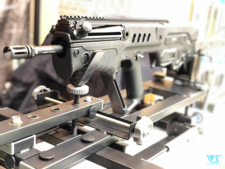 M4A1等のアサルトライフルとは違い、弾倉をトリガーよりも後部に装填するブルパップ方式が採用されています。