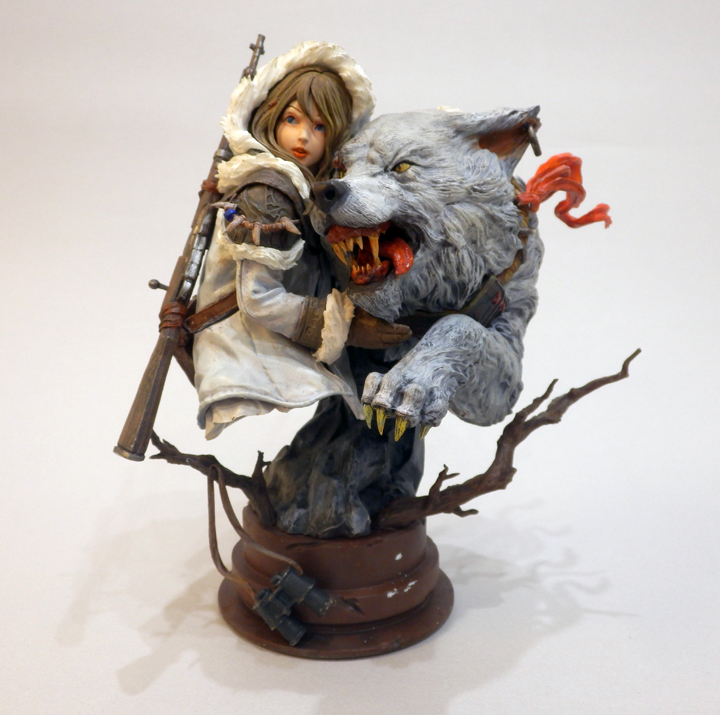 コメント:初の全面ファレホ塗りに挑戦しています。台座の岩肌は、ブラックグレーの後に、ホワイトをドライブラシで塗り重ねて風合いをだしました。鞄部分は革の雰囲気を出せるように、ブラウンか、レッド、フレッシュを混色しています。全体的にキットの出来と、ファレホの色調が良く合い、実力以上のものになりました。