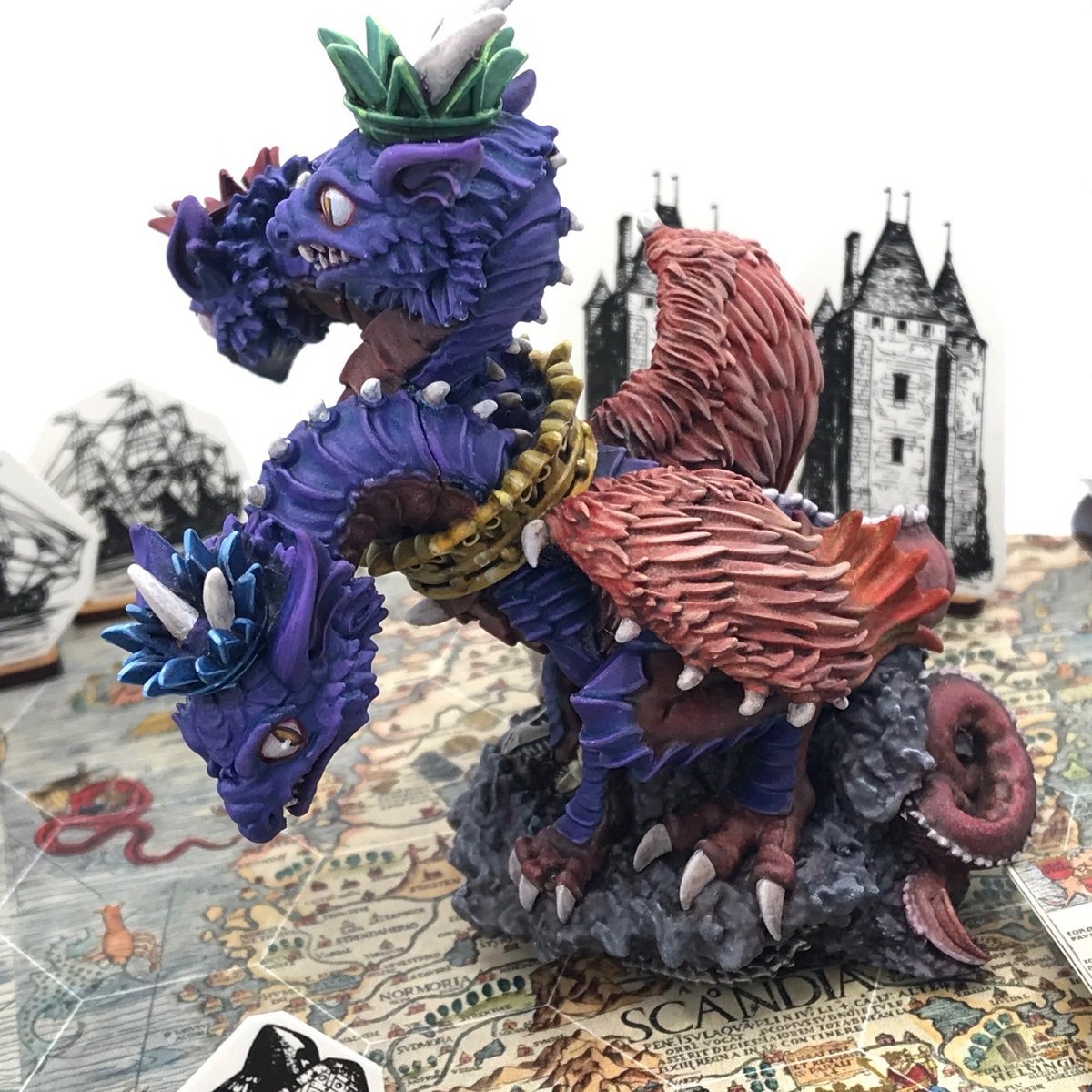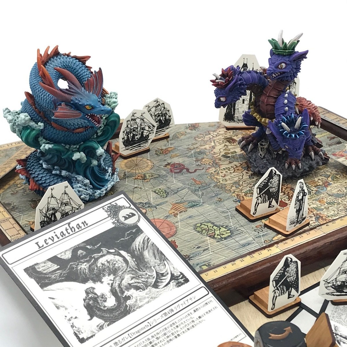 コメント:リヴァイアサンとズメイをファレホ筆塗り。可愛い造形を活かすためボードゲームっぽいベースを作りました。