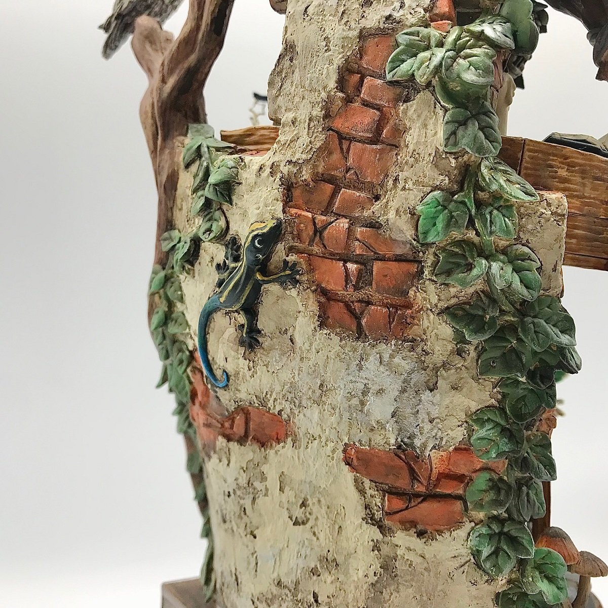 じゃじゃん!とでは少しアップで見てみましょう!もうなんと言うのか、先ほどの作品も情報量がてんこ盛りですが、この角度からぱしゃり!どんな素材が見えますか?「魔女、カエル、ナベ、本、瓶、机、レンガ、草・・・」うん大変だっ!
