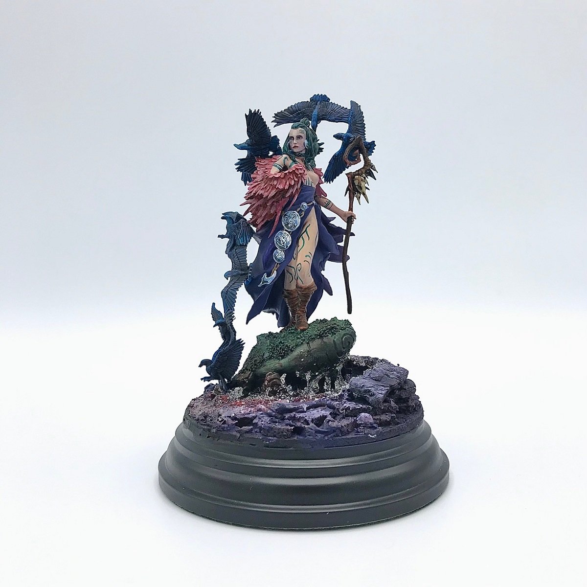 と言うことで別アングルのアップから見ていきましょう!モーガン・ル・フェイ!イタリアではファタ・モルガナとも言いますが、様々な顔のあるキャラクターですよね、一説ではきれいな歌声、治癒の術が使える、羽が生えて飛べるなどありますが黒魔術が使える!といったものもあり今回の造形でカラスも待っていることから少しダークなモーガンさんと言うことがうかがえますよね、だからこその全体的に寒色を中心とした色味のチョイス!作品の世界観をしっかりと見定めた配色が見事です。