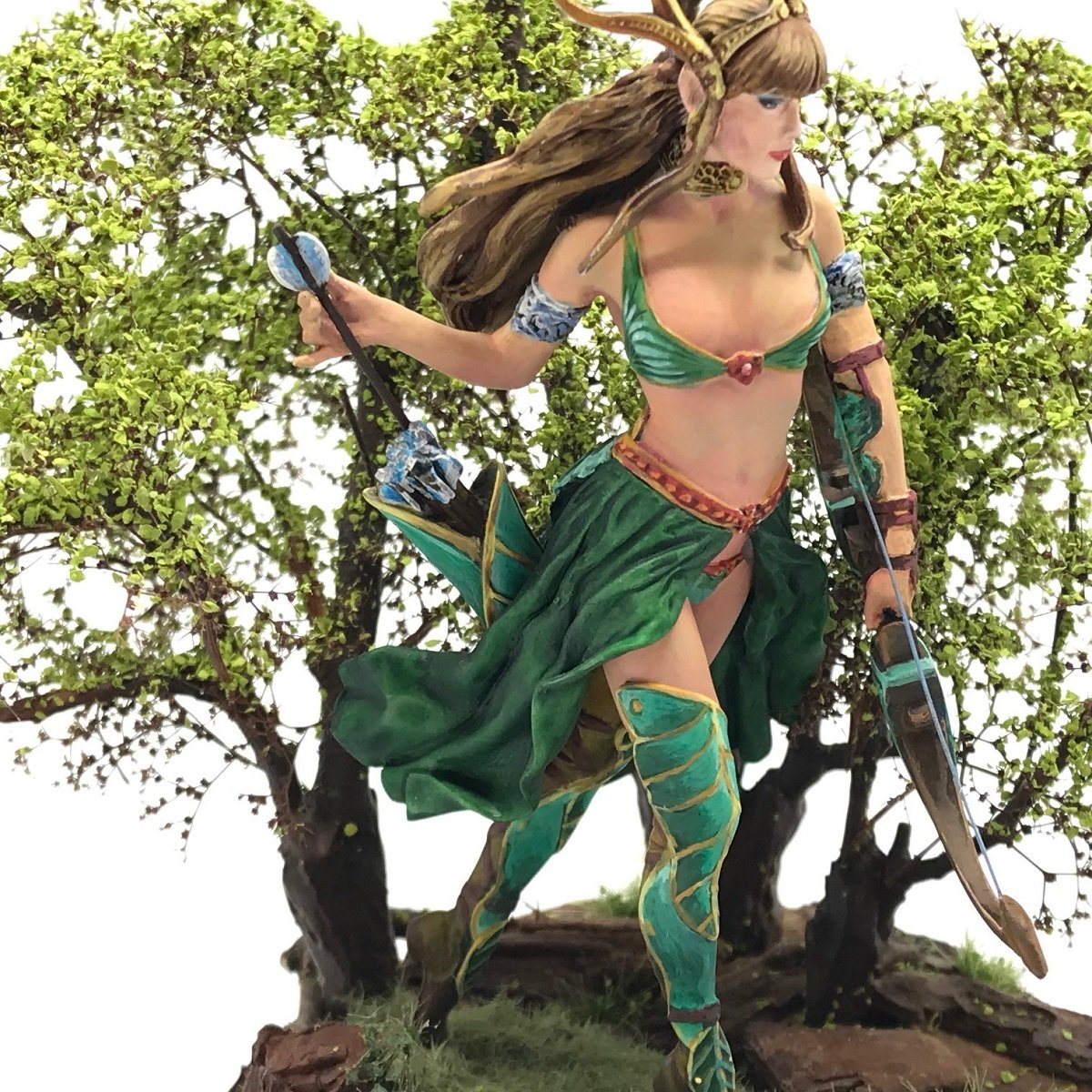 コメント:肌の部分にファレホを使用。木陰から矢を放つイメージでレイアウトしました。緑の鎧はノンメタルです。