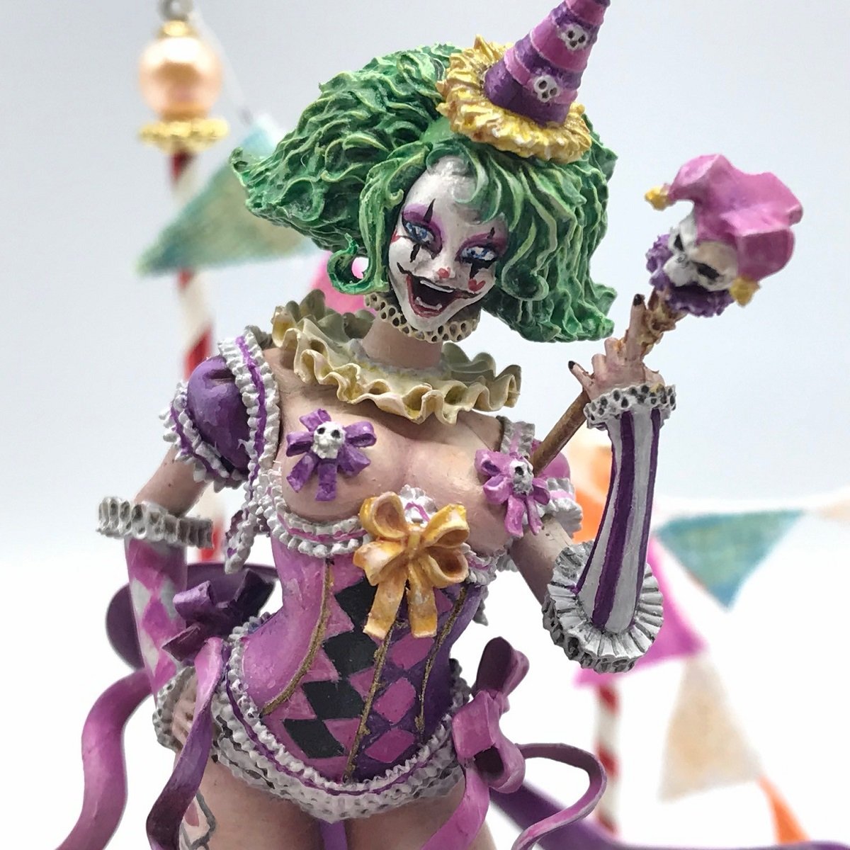 というわけで見ていきます!まずはやっぱりご尊顔!75mmキットのお顔っていえば全身が75mmなわけであって顔自体は10mmに満たないものがほとんどです。また今回の作品は特に道化ということもあってしっかりと白塗りのピエロメイク!そのまんま白というわけでもなく服と合わせた同色のアイラインに唇、真っ赤なお鼻に頬のハート・・・・どんだけのブラシコントロールなのだ!また目もクリッククリでめちゃ可愛いですよね!この目の大きさは実は造形にはないんですよ・・・これまるまろし様が目を大きく見せるように描き込まれているんです・・・・流石っ!